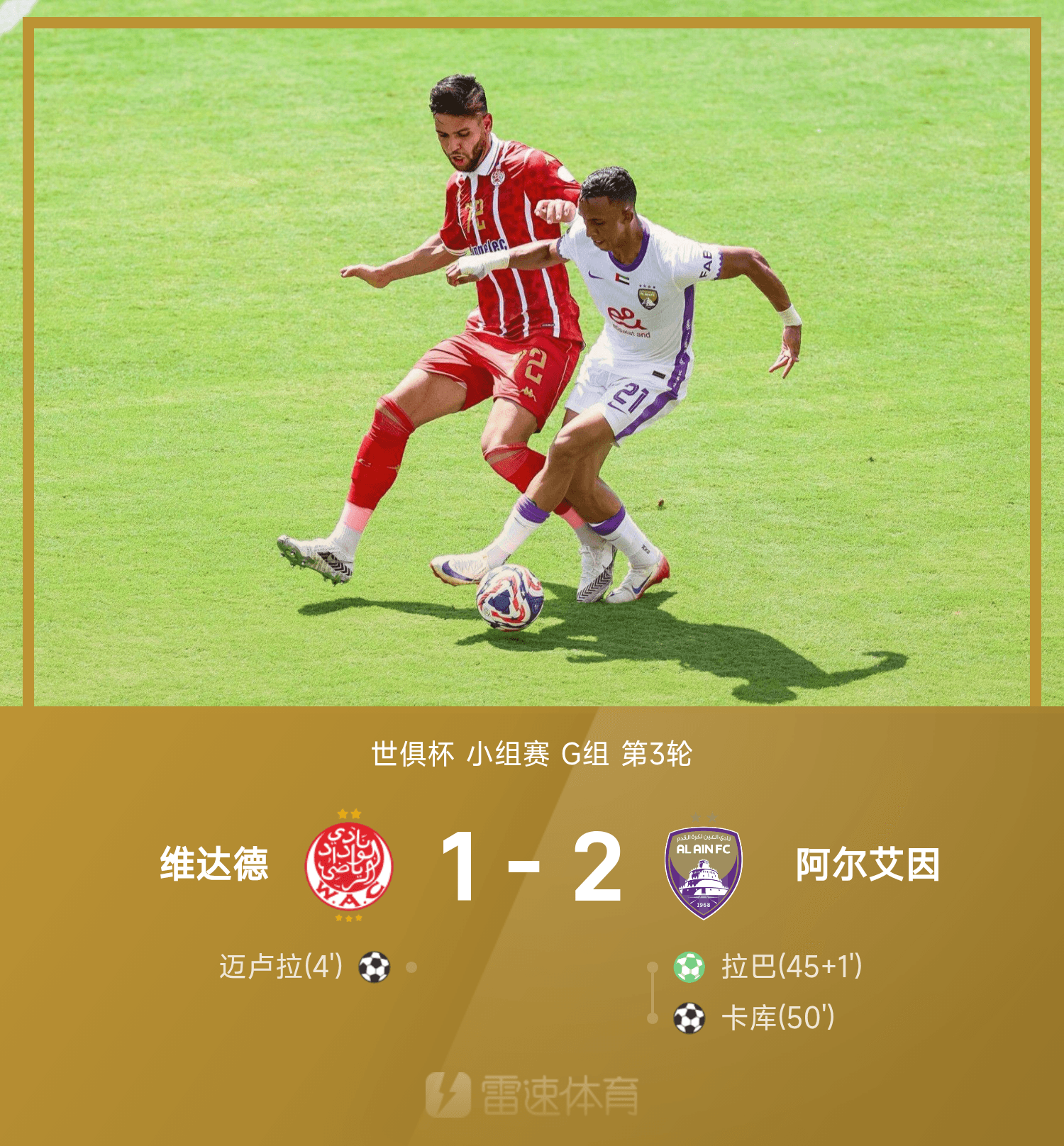 世俱杯战报:卡库破门,阿尔艾因2-1维达德,两队双双出局